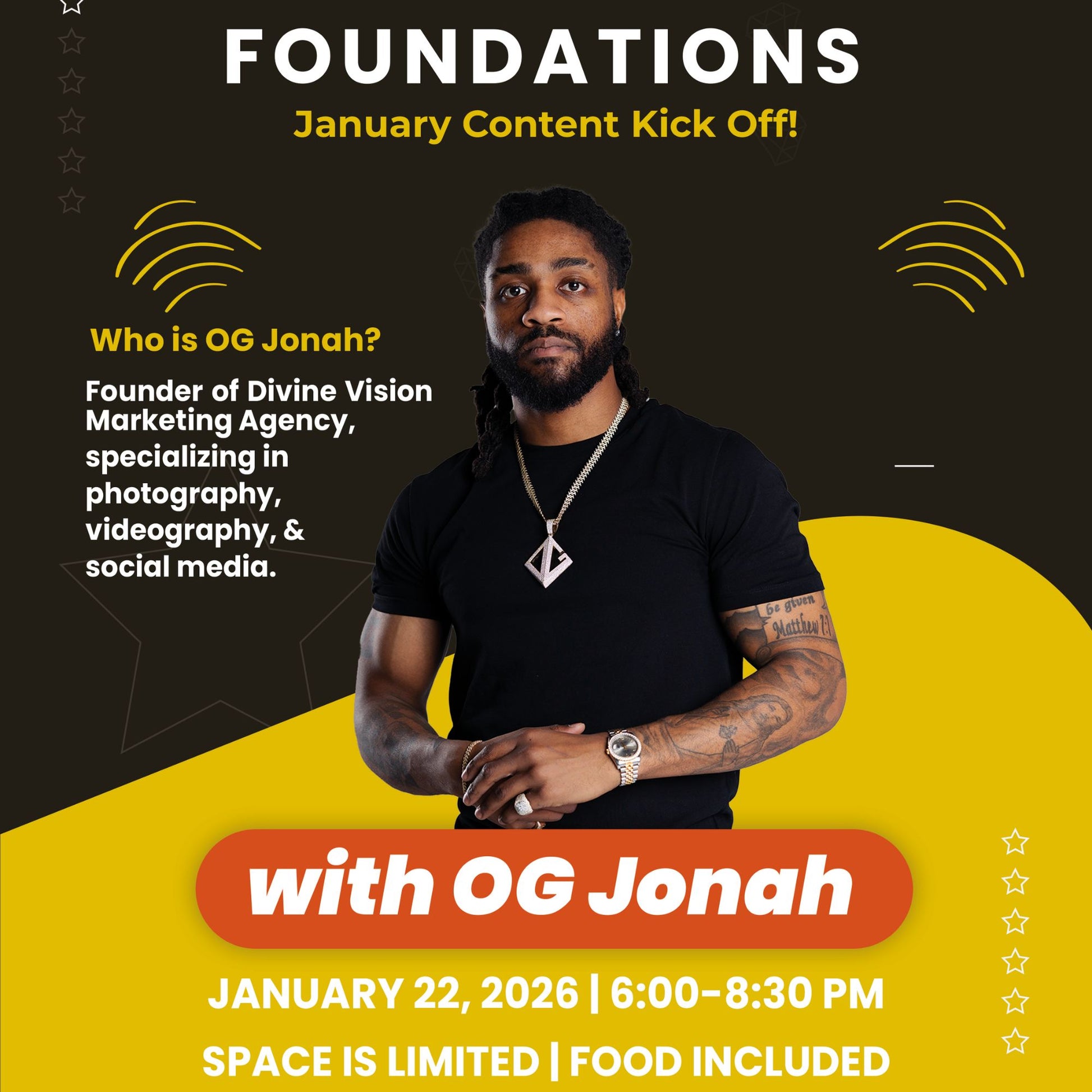 This class is taught by OG Jonah, founder of Divine Vision Marketing, a creative agency specializing in photography, videography, and social media for food and lifestyle brands.