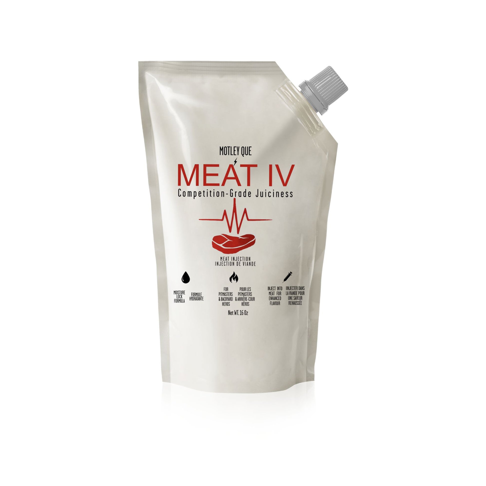 Meat IV by Motley Que Give your BBQ the ultimate boost with Meat IV, Motley Que’s premium sodium phosphate injection mix. Designed for pitmasters, competitors, and backyard legends alike, this powerhouse helps your proteins hold onto every drop of flavor and juiciness.